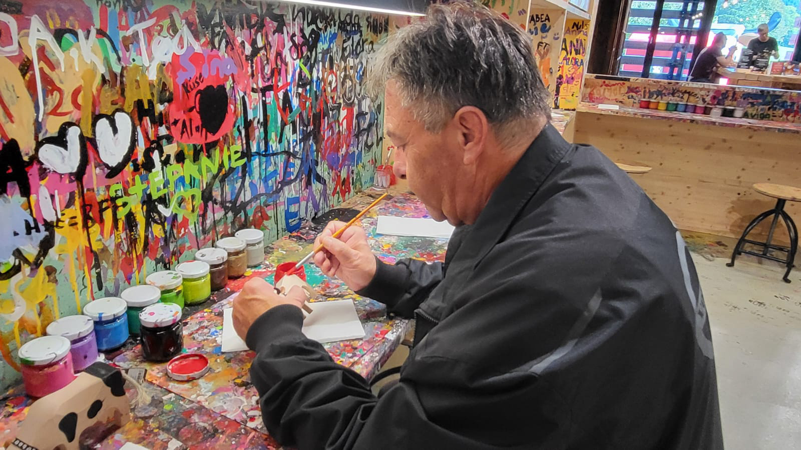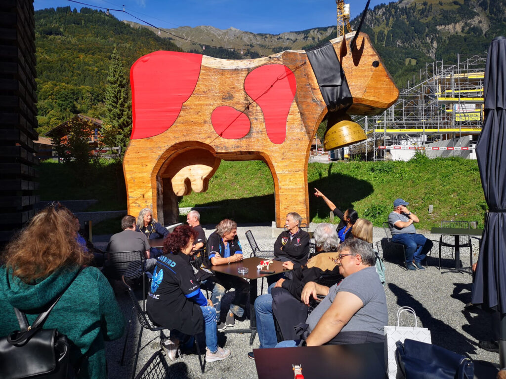 In Hofstetten bei Brienz angekommen, parkten wir am Ballenberg West und setzten unsere Tour zu Fuss fort: Ziel war Trauffers Erlebniswelt. Zuerst stärkten wir uns mit einem deliziösen Mittagessen, dann wurde es kreativ! Während einige von uns ihr eigenes Chuehli mit Hingabe bemalten, erkundeten andere die Erlebniswelt – oder machten beides. Nach einer spannenden Führung durch Trauffers Betrieb, der sich über mehrere Gebäude in Hofstetten verteilt, waren die Chuehli trocken, die Geschichten ausgetauscht und der Durst auf mehr Firebird-Abenteuer geweckt. Mit einem letzten gemeinsamen Drink liessen wir den Tag ausklingen, bevor die Motoren für die individuelle Heimfahrt wieder aufheulten.